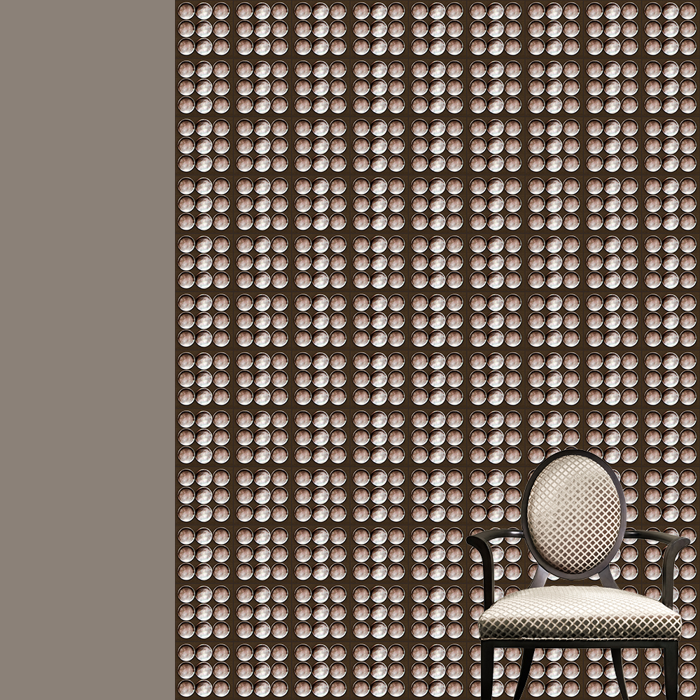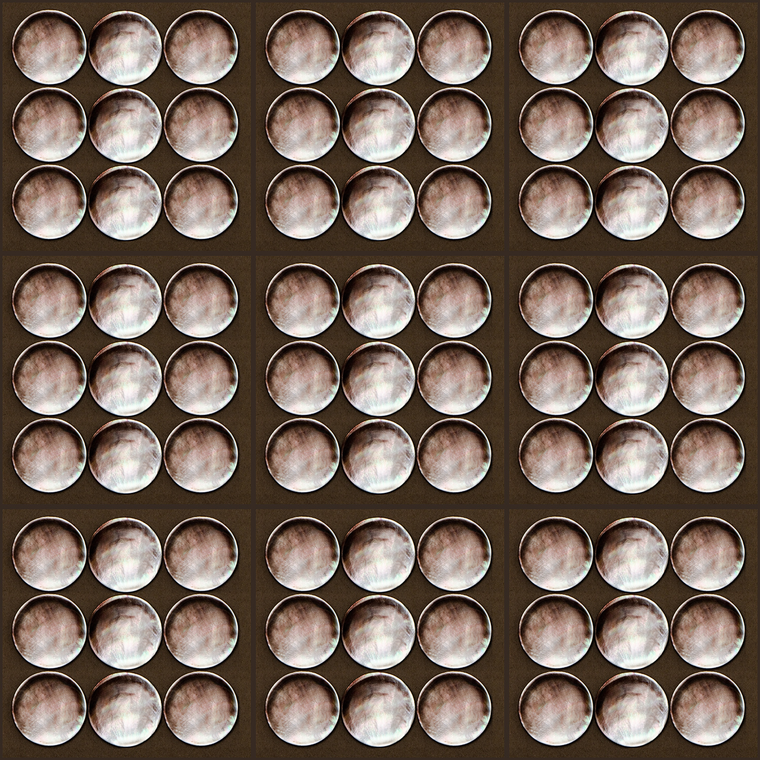 Beige Mother Of Pearl Wallpaper depicts a surface made of panels of real Mother Of Pearl discs